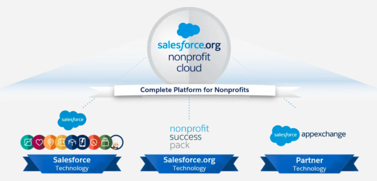 - The Nonprofit Cloud that houses NPSP covers technologies to address issues that nonprofits face. It is a collection of tools and it brings together NPSP, Salesforce clouds and partner apps to provide a full solution. For example, NPSP + Marketing Cloud & Experience Cloud + Tax receipting tool. Additionally, it can sit on top of Sales Cloud/Service Cloud.