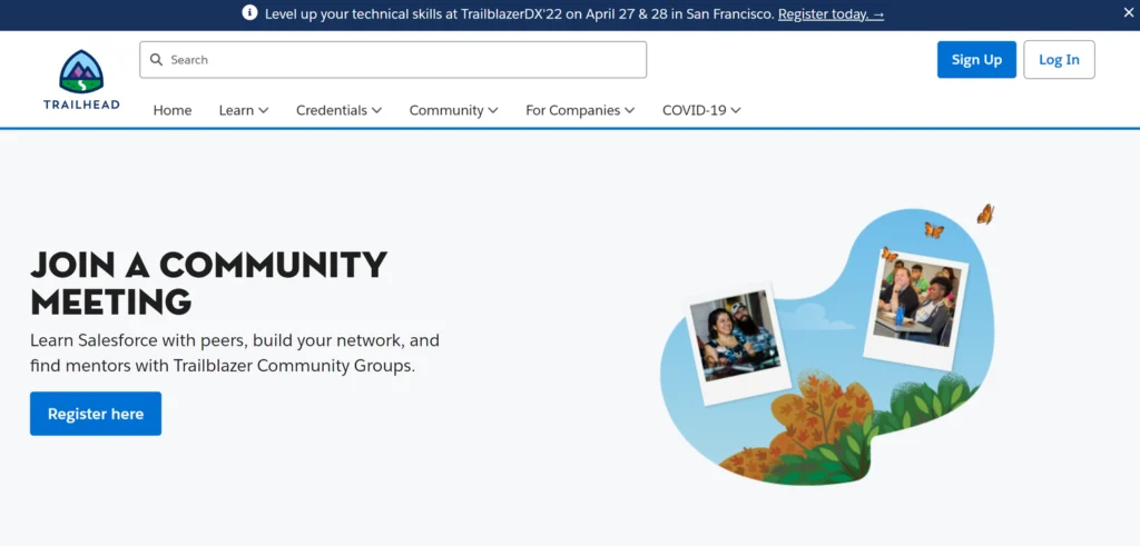 - For further support, join Salesforce groups and events such as Trailblazer community groups (can search for a local group or connect with others) and webinars