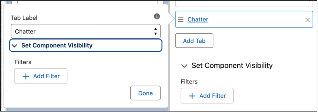 You can customize tab visibility, making individual tabs conditionally visible based on criteria you set. Use this feature to limit visibility for third-party data and sensitive information.