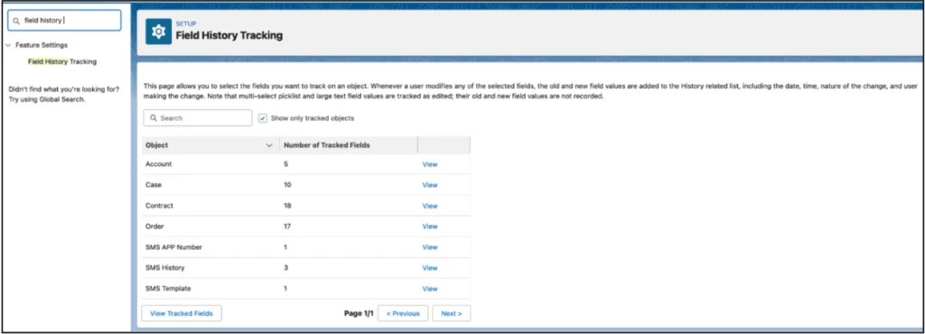 Setting up Field History Tracking just got a lot smoother! Instead of doing it one object at a time, you can now view and modify the settings on a single page. The Field History Tracking page, available in Setup, allows you to control both the tracked objects and fields. You can easily see the number of tracked fields before making any changes.