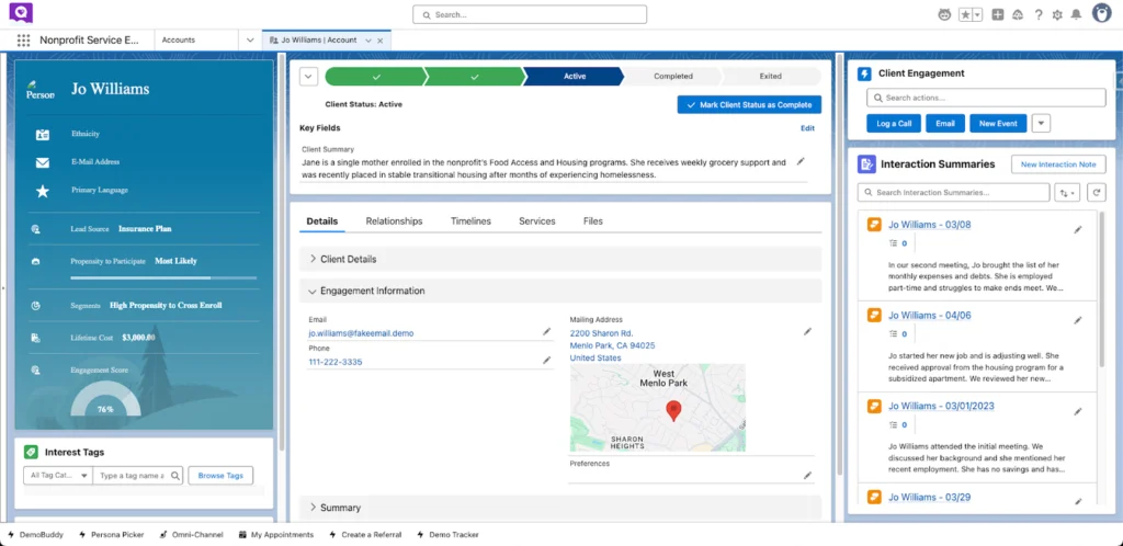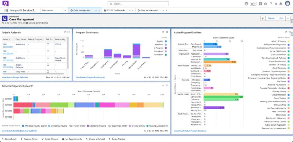 A configurable case management solution built on Salesforce that helps nonprofits manage client intake, service plans, notes, referrals, and outcome reporting in one CRM.